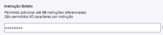1. No campo "Instrução do Boleto", você pode incluir uma orientação com até 60 caracteres.