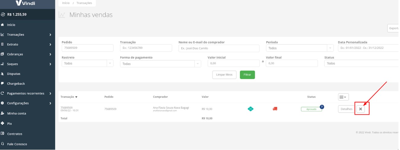 Caso você utilize também a Vindi Recorrência, é importante lembrar que o estorno do PIX é feito diretamente na Vindi Pagamentos.