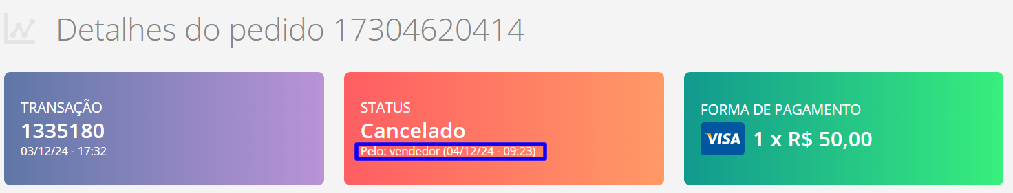 2. Caso o pedido já tenha sido aprovado, o cancelamento pode significar que ocorreu um estorno solicitado pelo lojista ou um de seus usuários permissionados.