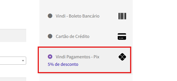 Essa funcionalidade permite que o lojista proporcione descontos em métodos de pagamento específicos da Vindi. Através do painel administrativo do WooCommerce, acessando o plugin da Vindi, é possível configurar descontos percentuais para Pix e Bolepix. Lembrando que essa funcionalidade reflete diretamente no painel da Vindi e que ela só está disponível para métodos de pagamento da Vindi.